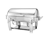 HALLMARK Collection Roll Top Chafer, 8 quart, oblong, full roll opens to 180, 18/10 stainless, chrome accents