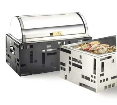 Chafer, 23"W x 15"D x 9-1/4"H, with pan and roll top cover, squared, stainless steel